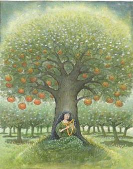 De Godin Freya, de godin van de vruchtbaarheid, wordt vaak met een appel in haar hand afgebeeld.