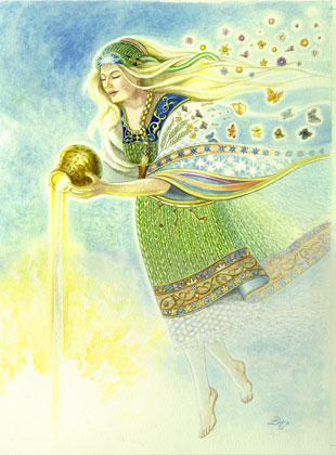 In haar wagen doorkruiste ze de lucht om warmte, genezing en groei te verzorgen. Er zijn tal van liedjes die naar haar verwijzen den die ook in deze tijd nog gezongen worden. Een oud gebruik was om met Midzomer brandende wielen of tonnen van heuvels af te rollen. Dit werd gedaan om de zon te begroeten.