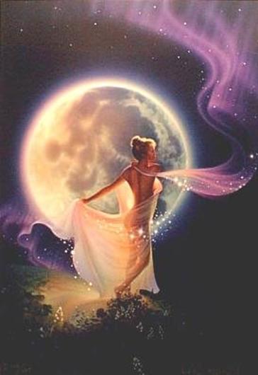Er zijn dus eigenlijk 2 manen. De fysieke droge maan die aan de hemel staat en als tweede, de maan die vrouwelijke energie vertegenwoordigt en invloed uitoefent op ons gevoelsleven. Deze laatste maan is de Moeder Godin.